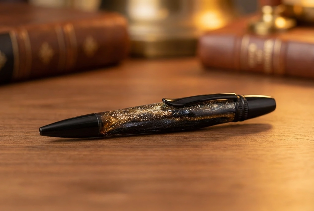 Each Northstar blank is hand‑poured in small batches, then pressure‑cast for clarity and shaped to a smooth, polished finish. The Northstar profile is slim but substantial, offering a comfortable taper and balanced feel that makes it ideal for planners, meetings, and daily carry.